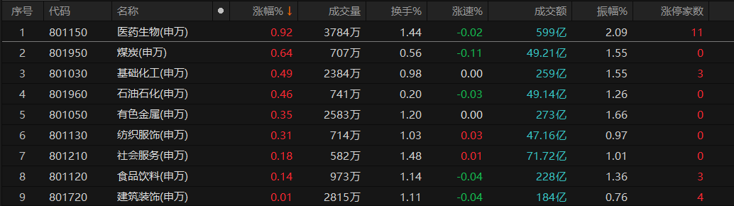 漲停股方面,今日有38只個股以漲停價報收,其中,有7只個股股價已連續(xù)上漲超過3個交易日;7只個股跌停報收。從申萬一級行業(yè)看,醫(yī)藥生物行業(yè)漲停股數(shù)量居首,達(dá)11只,機械設(shè)備和建筑裝飾的漲停股數(shù)均為4只。
