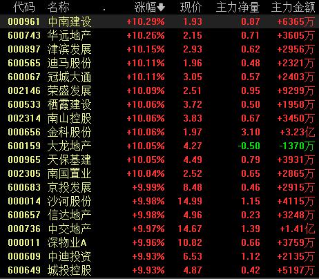 具體看,截至8月28日上午收盤,房地產(chǎn)開發(fā)板塊漲幅居首,達(dá)6.87%。其中,包括中南建設(shè)、華遠(yuǎn)地產(chǎn)、津濱發(fā)展、迪馬股份等在內(nèi)的24只個股漲停。