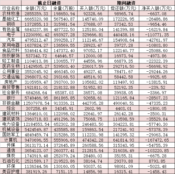 表:8月25日申萬一級行業(yè)兩融交易情況