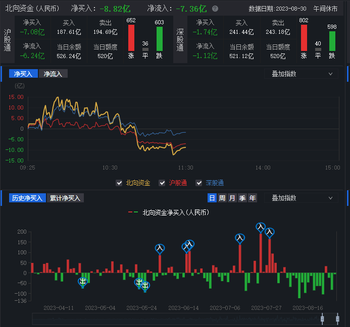 從資金面來看,8月30日上午,北向資金凈賣出8.82億元。另外,截至8月29日,滬深北三市的兩融余額合計15718.22億元,較前一交易日增加60.47億元。其中,融資余額合計14786.92億元,較前一交易日增加30.68億元;融券余額為931.30億元,較前一交易日增加29.79億元。