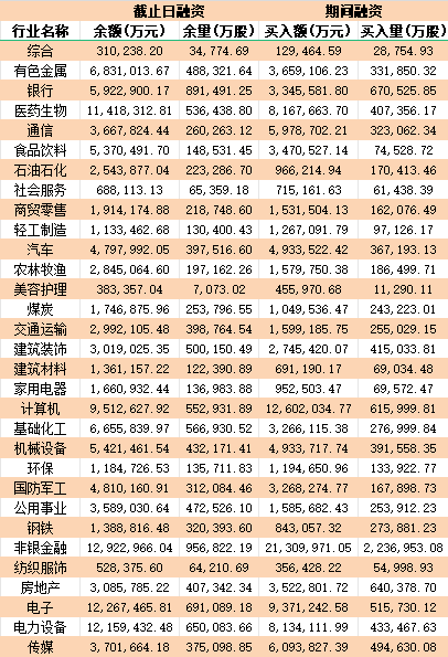 表:8月30日申萬一級行業(yè)兩融交易情況