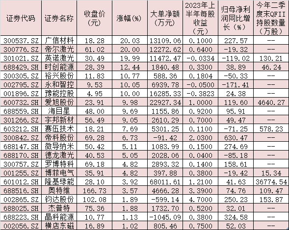 值得關(guān)注的是,以QFII(合格境外機(jī)構(gòu)投資者)為代表的外資也提前布局部分BC電池概念股。數(shù)據(jù)顯示,截至今年二季度末,有8家BC電池概念板塊上市公司的前十大流通股股東中出現(xiàn)QFII身影,以今年6月末收盤(pán)價(jià)計(jì)算,持股市值為125.85億元。具體來(lái)看,鈞達(dá)股份、英諾激光、奧特維、時(shí)創(chuàng)能源、博菲電氣等5家公司今年二季度獲QFII新進(jìn)持有;愛(ài)旭股份獲QFII繼續(xù)加倉(cāng),增持?jǐn)?shù)量達(dá)1385.65萬(wàn)股;今年二季度QFII對(duì)隆基綠能、賽伍技術(shù)的持倉(cāng)未變,持股數(shù)量分別為36774.54萬(wàn)股、578.23萬(wàn)股。