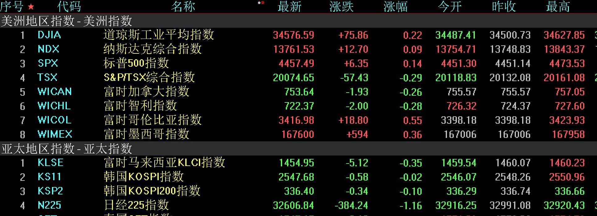 本周五,亞太主要股市全線收跌。韓國(guó)綜合指數(shù)跌0.02%,報(bào)2547.68點(diǎn),周跌0.63%;日經(jīng)225指數(shù)跌1.16%,報(bào)32606.84點(diǎn),周跌0.32%;澳洲標(biāo)普200指數(shù)跌0.20%,報(bào)7156.70點(diǎn),周跌1.67%;新西蘭NZX50指數(shù)跌0.72%,報(bào)11344.11點(diǎn),周跌1.60%。