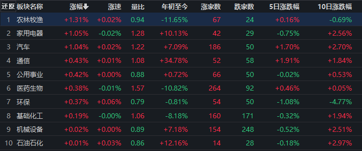 農(nóng)林牧漁漲1.31%