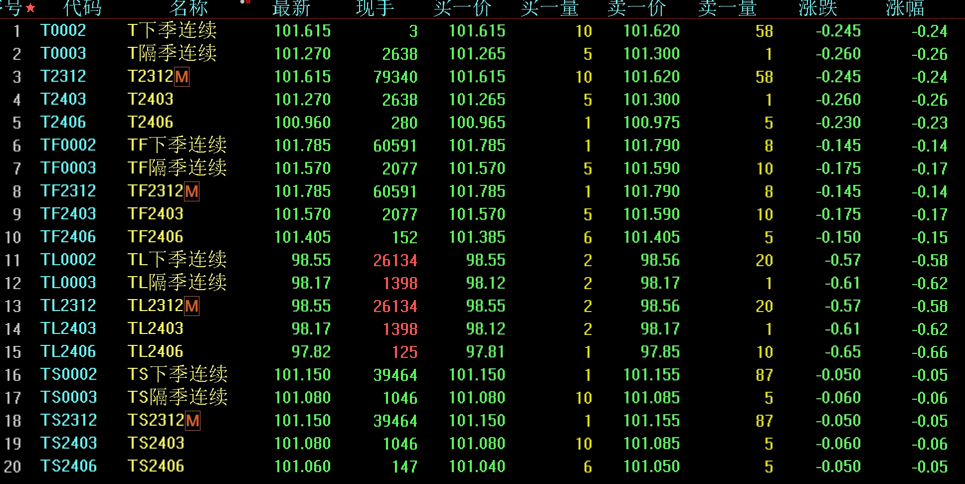 周五,國(guó)債期貨全線(xiàn)收跌,30年期主力合約跌0.58%,10年期主力合約跌0.24%,5年期主力合約跌0.14%,2年期主力合約跌0.05%。