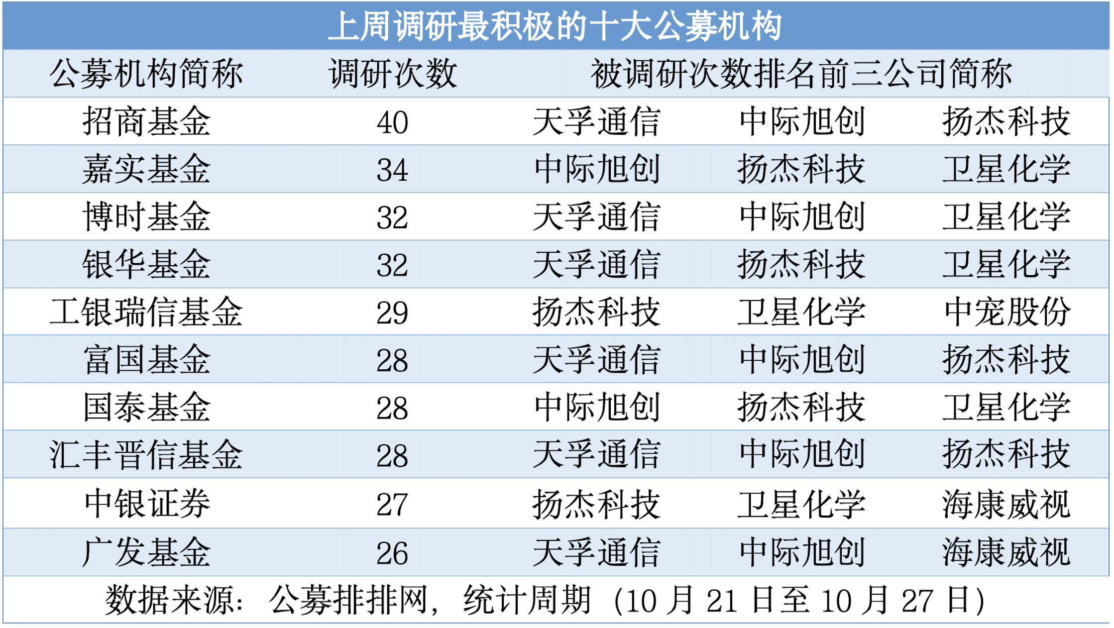(上周調(diào)研最積極的十大公募機構(gòu))