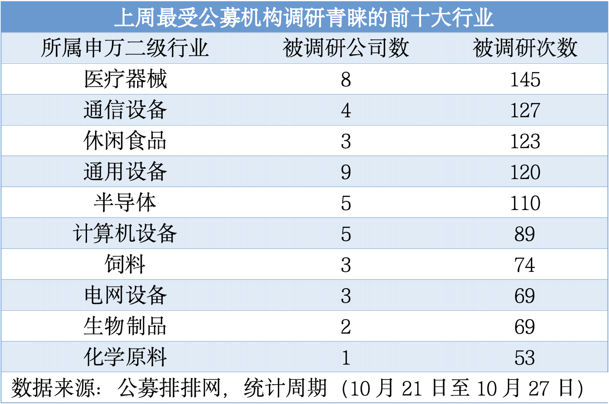 (上周最受公募機構(gòu)調(diào)研青睞的前十大行業(yè))