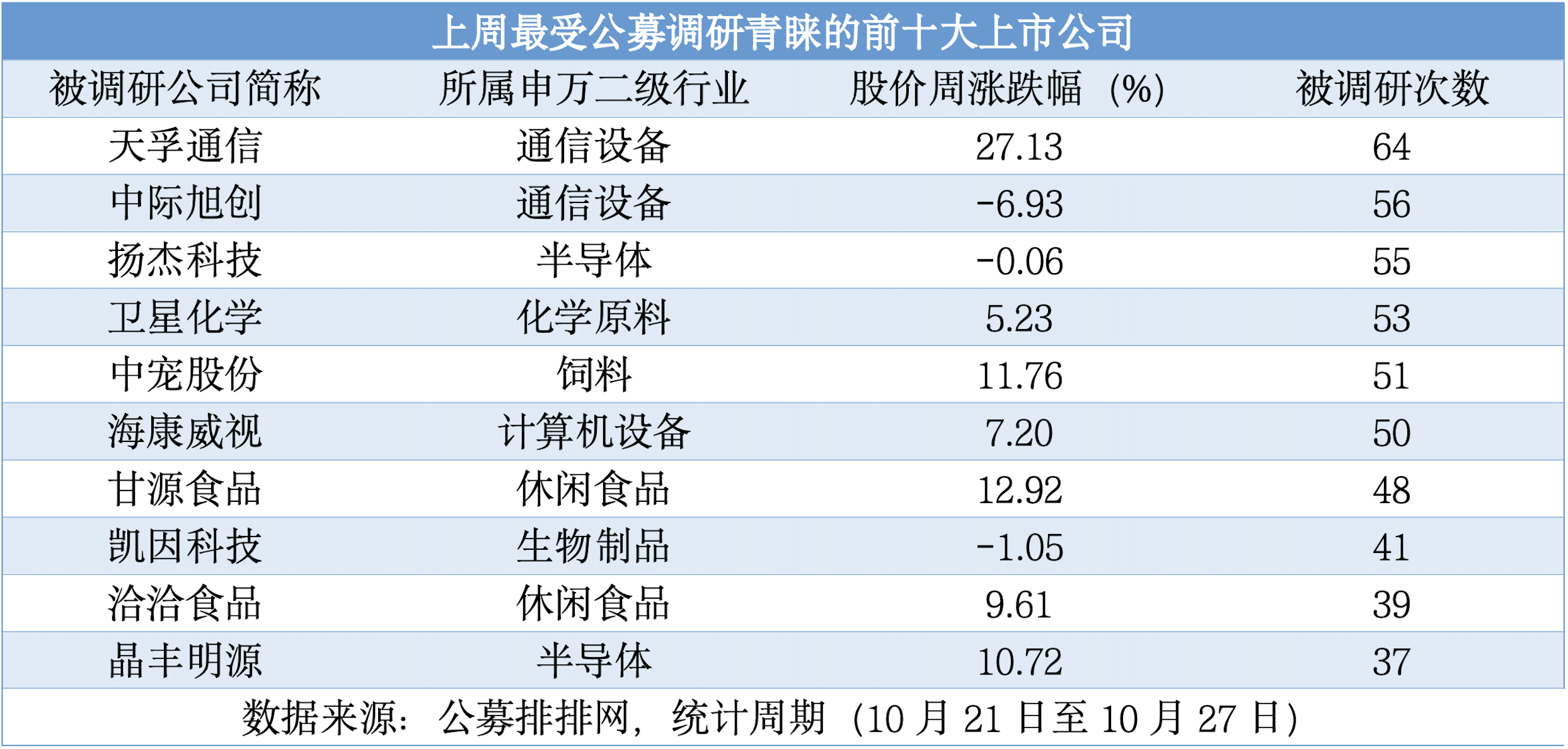 (上周最受公募調(diào)研青睞的前十大上市公司)