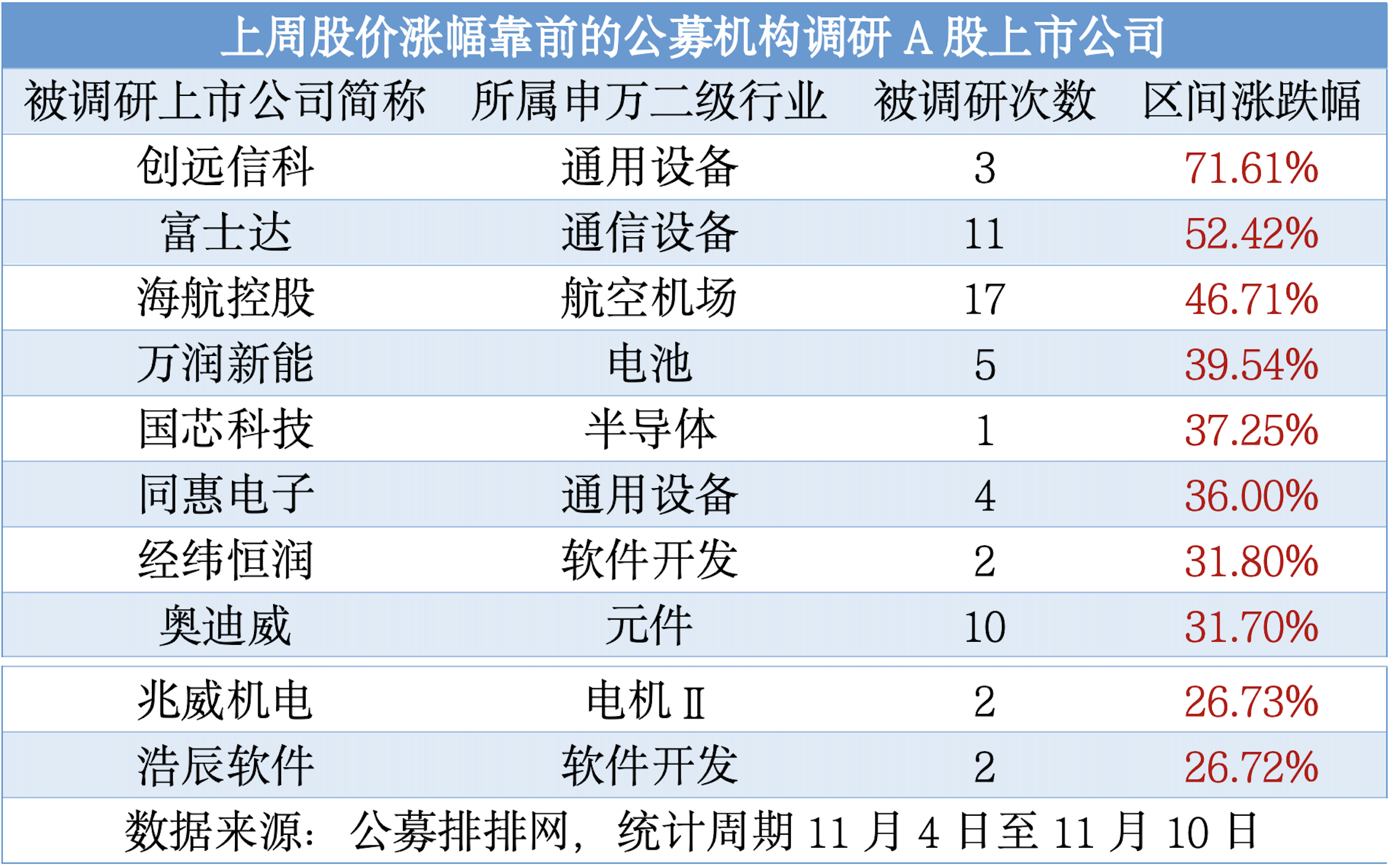 (上周股價(jià)漲幅靠前的公募機(jī)構(gòu)調(diào)研A股上市公司)