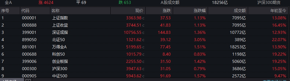 2024年12月2日,A股市場呈現(xiàn)出一片火熱的上漲態(tài)勢,三大指數(shù)集體上行,市場交投活躍,個(gè)股漲多跌少,眾多板塊表現(xiàn)出色,顯示出市場積極的投資氛圍和較強(qiáng)的活力。