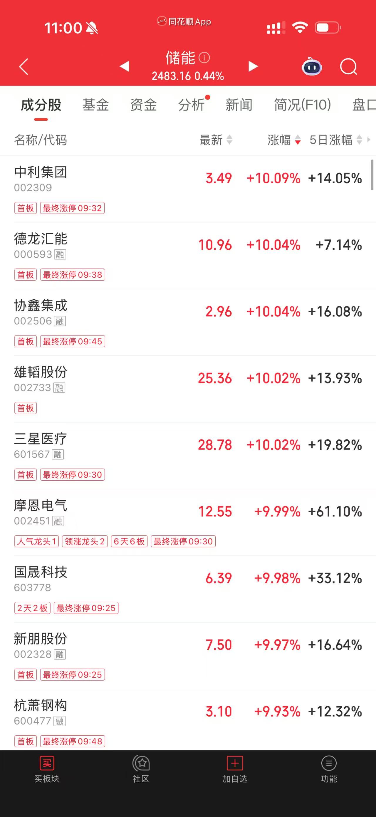 截至當(dāng)日上午11時,中來股份(300393)達成“20cm”漲停,中利集團(002309)、德龍匯能(000593)、雄韜股份(002733)、協(xié)鑫集成(002506)、三星醫(yī)療(601567)、摩恩電氣(002451)、國晟科技(603778)、新朋股份(002328)、杭蕭鋼構(gòu)(600477)、拓日新能(002218)、金辰股份(603396)、海螺新材(000619)、華光環(huán)能(600475)、三孚股份(603938)紛紛漲停。