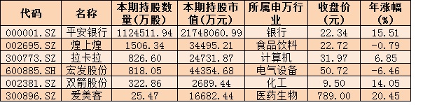 表:保險(xiǎn)資金去年四季度持有的6只個(gè)股情況: