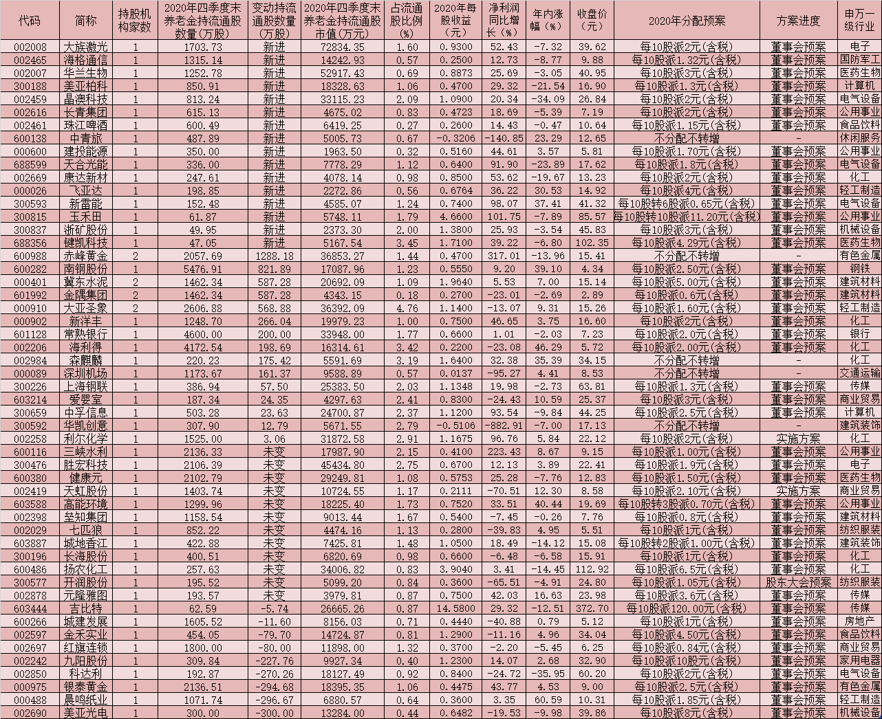 表:去年四季度養(yǎng)老金持倉股一覽