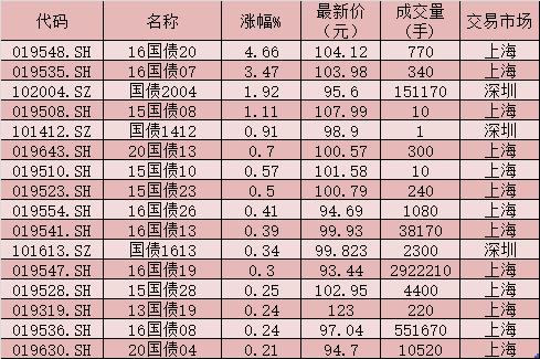 4月13日,國債市場表現(xiàn)活躍,國債指數(shù)創(chuàng)2003年12月份以來新高,該指數(shù)盤中上探至185.80點,截至今日收盤,國債指數(shù)報收185.77點,當(dāng)日上漲0.06%,年內(nèi)累計漲幅達(dá)1.08%。其中,16國債20漲幅居前,達(dá)到4.66%,報收104.12元/張;16國債07漲幅也達(dá)3.47%,報收103.98元/張。