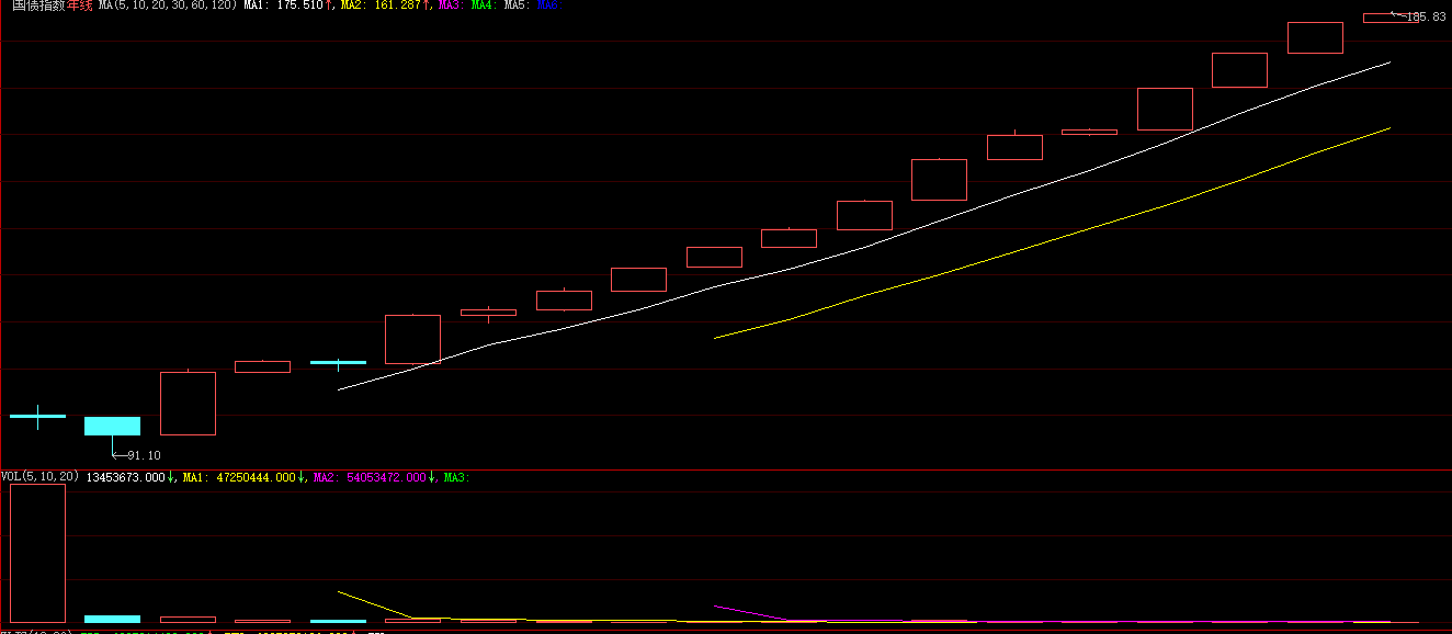 同日,國債期貨全線收漲,10年期主力合約漲0.36%,5年期主力合約漲0.28%,2年期主力合約漲0.14%,均實現(xiàn)三連陽。
