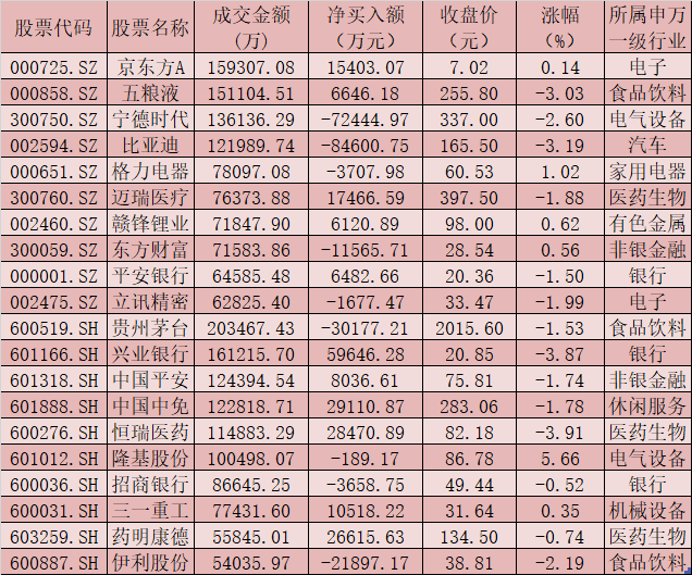 四、周四(4月15日)滬、深股通前十大成交活躍股交易情況