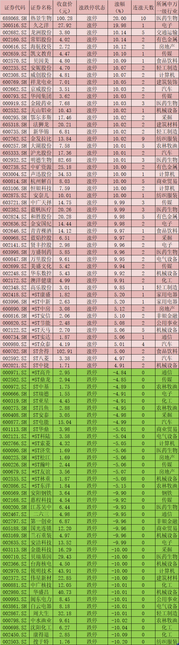 一、周四(4月15日)DDE大單資金凈買入TOP20