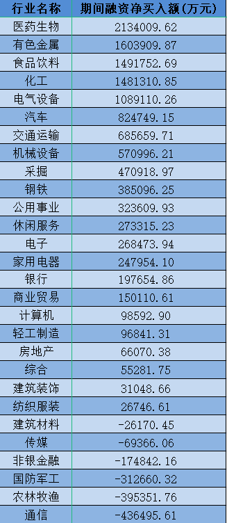 表:今年以來(lái)申萬(wàn)一級(jí)28個(gè)行業(yè)融資情況