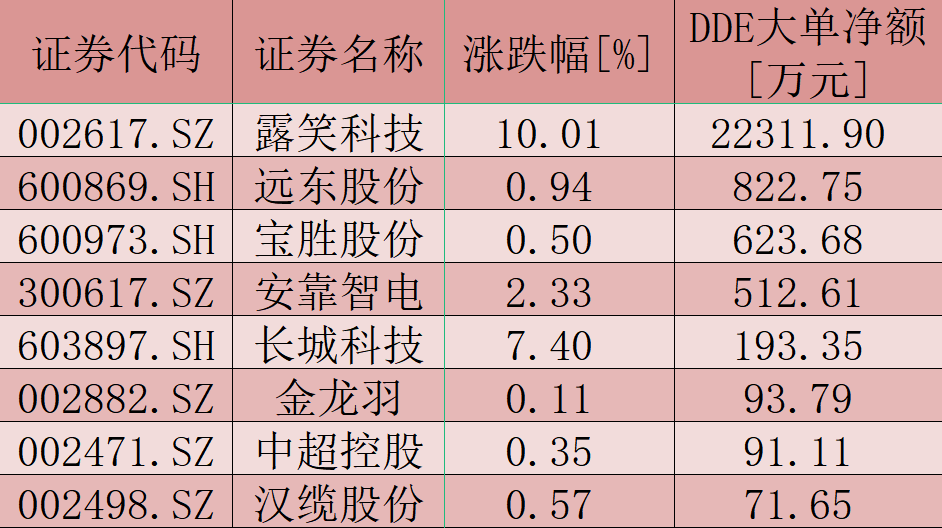 電線電纜板塊的行情也與資金面因素相關(guān)。同花順數(shù)據(jù)顯示,大單資金正積極搶籌部分電線電纜板塊個(gè)股。今日,共有8只個(gè)股獲2.47億元大單資金搶籌,露笑科技獲大單資金凈流入額最多,高達(dá)2.23億元;遠(yuǎn)東股份、寶勝股份和安靠智電的大單資金凈流入額也達(dá)到500萬元以上,分別為822.75萬元、623.68萬元和512.61萬元。