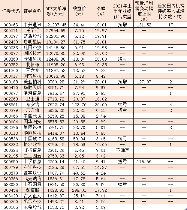 表:7月12日獲超千萬元以上大單資金搶籌的網(wǎng)絡(luò)安全概念股