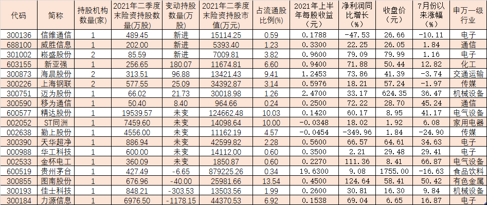 表:今年二季度獲險(xiǎn)資持倉(cāng)個(gè)股一覽