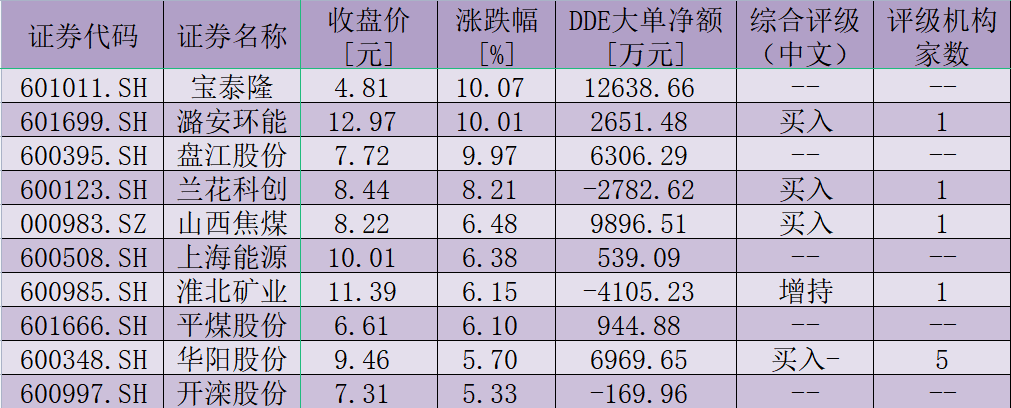 表:8月4日,煤炭開(kāi)采加工板塊漲幅超過(guò)5%個(gè)股一覽