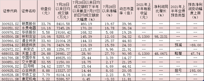 表:7月28日以來日均成交額實現(xiàn)增長的運(yùn)輸設(shè)備股一覽