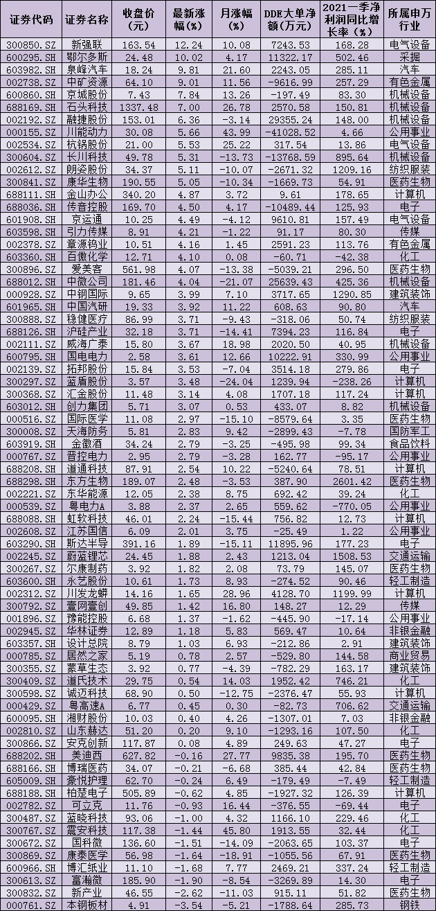 另外,從資金流向上看,上述71只個股合計資金凈流入達4.13億元。其中,40只個股呈現(xiàn)資金凈流入態(tài)勢,融捷股份、中微公司、斯達半導、鄂爾多斯、國電電力等個股資金凈流入均超億元,分別為2.94億元、2.56億元、1.19億元、1.13億元和1.02億元。