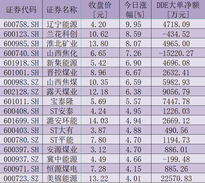 表:8月25日,煤炭開(kāi)采加工板塊股價(jià)漲幅超過(guò)4%個(gè)股一覽