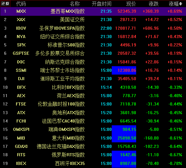 今日,亞太市場主要股指漲跌情況如下表。