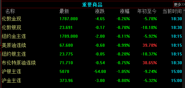 全球主要商品以下跌為主