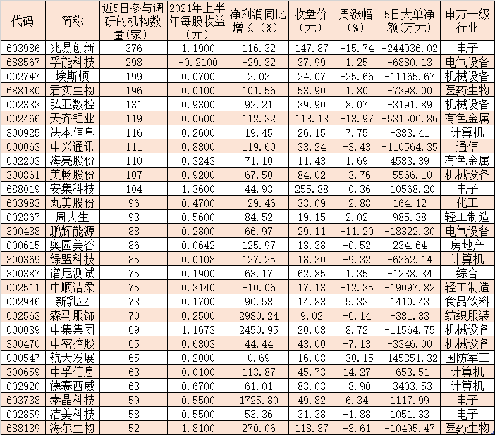 表:上周獲50家及以上機(jī)構(gòu)聯(lián)袂調(diào)研的個股