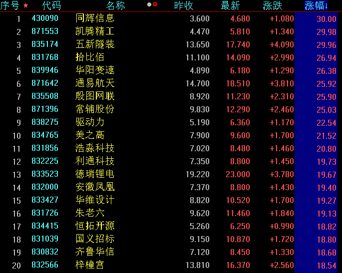 值得關注的是,新三板精選層周一盤中集體大漲,42只新三板精選層股票上漲幅度超過10%,占比逾六成。