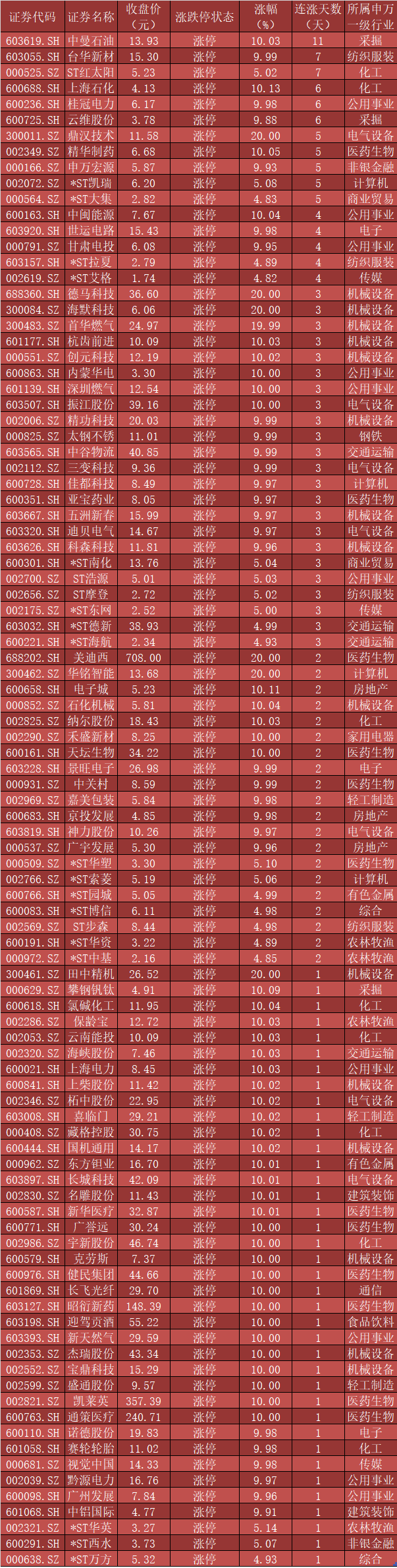 表:9月6日漲停股情況一覽