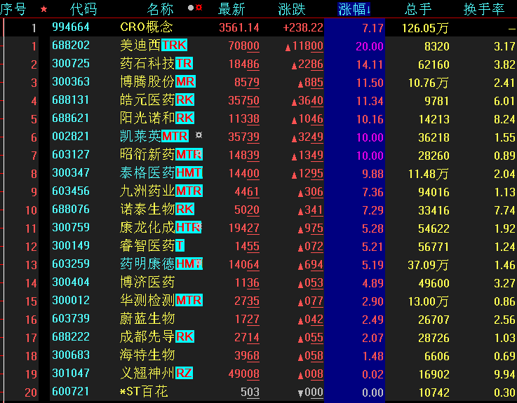 CRO概念:美迪西、凱萊英、昭衍新藥等個股紛紛漲停。