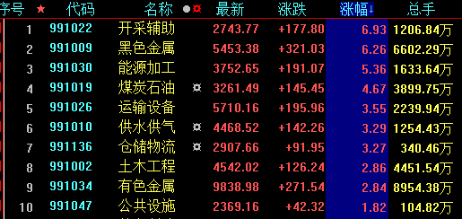 A股市場上,“煤飛色舞鋼花濺”行情延續(xù),農(nóng)業(yè)、化工、天然氣、石油等板塊也表現(xiàn)突出,局部賺錢效應(yīng)顯著。