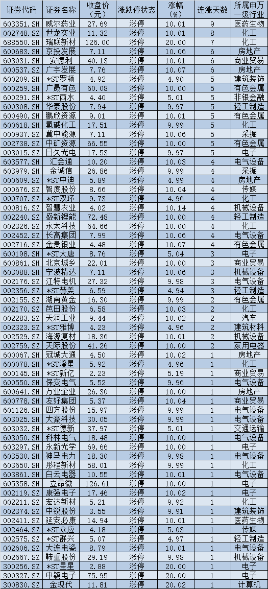 表:周五漲停股一覽