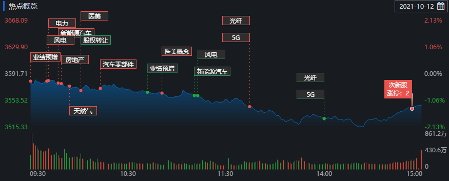 10月12日,A股市場深幅調整,三大指數(shù)集體跌超1%,截至收盤,上證指數(shù)跌1.25%,深證成指跌1.62%,創(chuàng)業(yè)板指跌1.81%;滬深兩市合計成交額9965.90億元;北向資金凈賣出13.79億元;總體來看,兩市個股普跌,超3600只個股下跌。