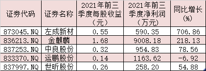 表:已披露2021年三季報業(yè)績新三板公司一覽