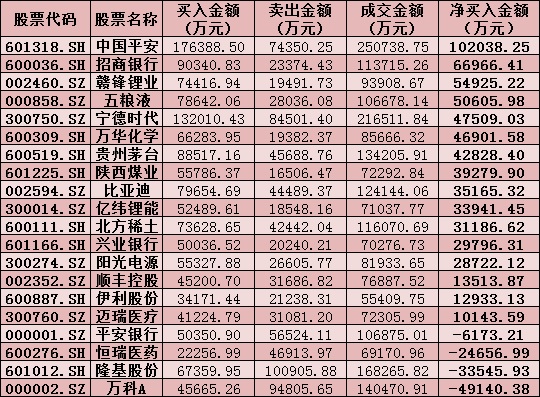 值得關(guān)注的是,北向資金凈買入101.54億元,其中,滬股通凈買入額達(dá)57.08億元,深股通資金凈買入額達(dá)44.46億元。從滬股通、深股通前十大成交活躍股榜單看,周四,中國平安凈買入金額達(dá)10.2億元,位居首位。