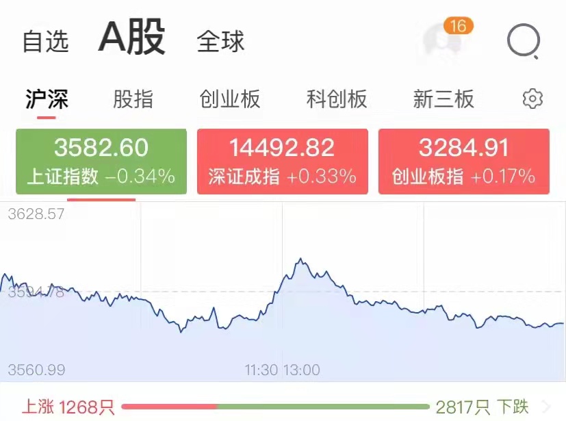 周五(10月22日),A股三大指數(shù)集體沖高回落,漲跌不一。截至收盤,上證指數(shù)跌0.34%,報3582.60點;深證成指漲0.33%,報14492.82點;創(chuàng)業(yè)板指漲0.17%,報3284.91點。兩市量能略有放大,達10152.4億元,突破萬億元大關(guān)。總體來看,兩市個股跌多漲少,上漲個股達1268只,下跌個股達2817只。