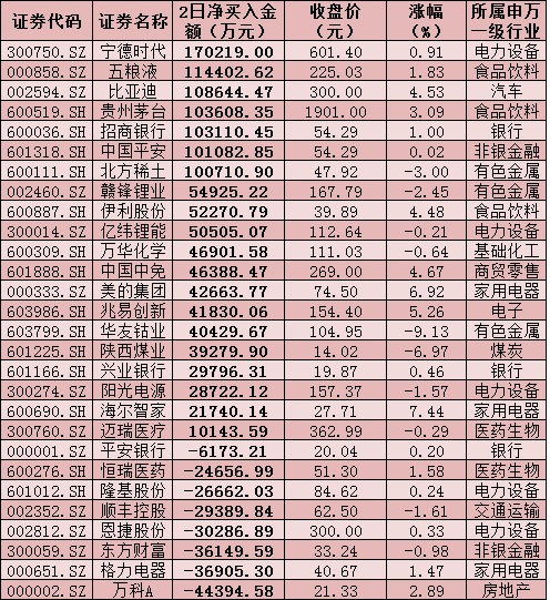值得一提的是,盡管,最近A股市場持續(xù)走低,個股普跌,但是,外資的動作卻猛買,北向資金連續(xù)2個交易日涌入超百億元,為年內(nèi)首次。周五,北向資金凈買入金額131.82億元,其中,滬股通資金凈流入72.12億元,深股通資金凈流入59.70億元。2個交易日合計凈買入金額達233.32億元。具體來看,近2日,共有28只個股現(xiàn)身滬股通、深股通前十大成交活躍股榜單,其中,寧德時代、五糧液、比亞迪、貴州茅臺、招商銀行、中國平安、北方稀土等7只個股,北向資金凈買入額均超10億元,合計達80.18億元。