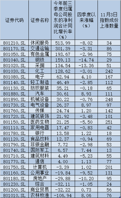 表:今年前三季度申萬(wàn)一級(jí)行業(yè)業(yè)績(jī)表現(xiàn)