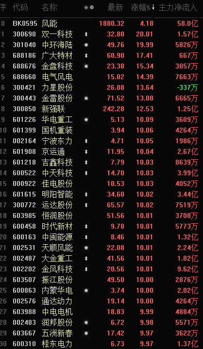23只風(fēng)能概念股漲停,成長(zhǎng)性持續(xù)強(qiáng)化。