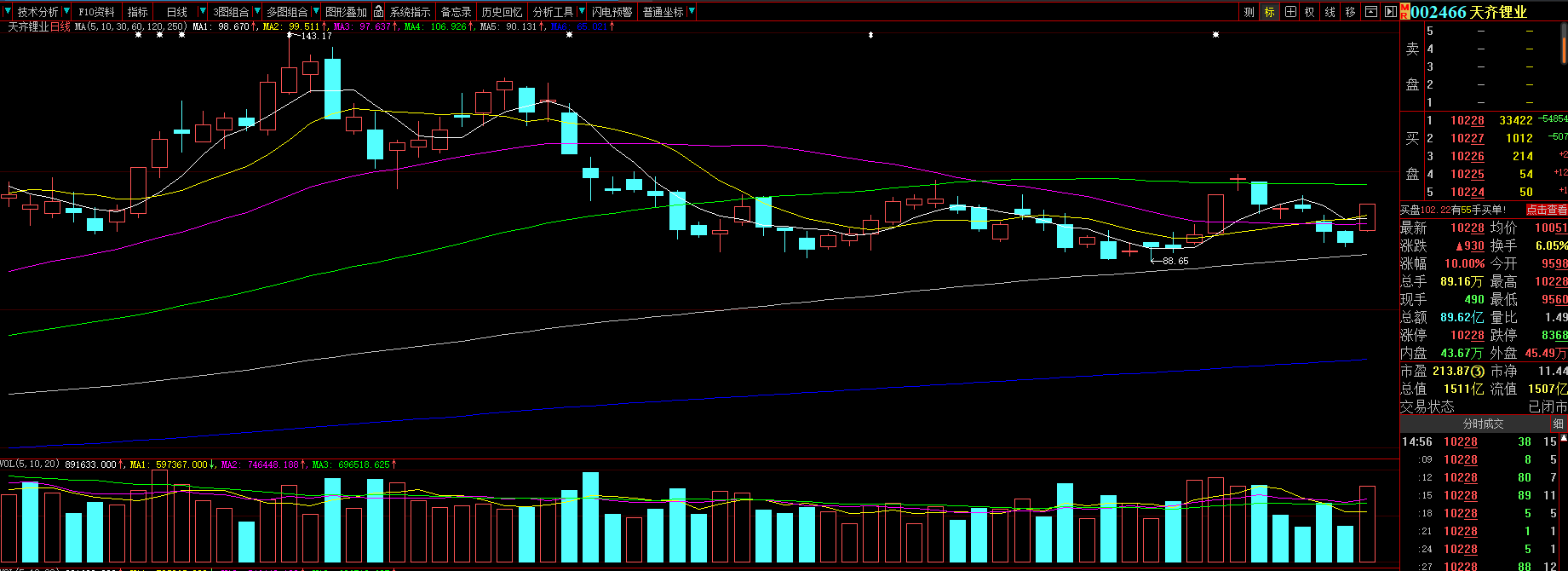 在今日股價漲停的個股中,天齊鋰業(yè)最新總市值再次超過1500億元。