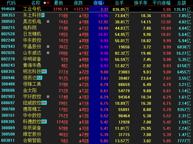 工業(yè)母機概念再度爆發(fā),包括東土科技、宇晶股份、青海華鼎等在內(nèi)的7只概念股漲停。