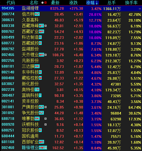 鹽湖提鋰板塊強(qiáng)勢(shì)領(lǐng)漲
