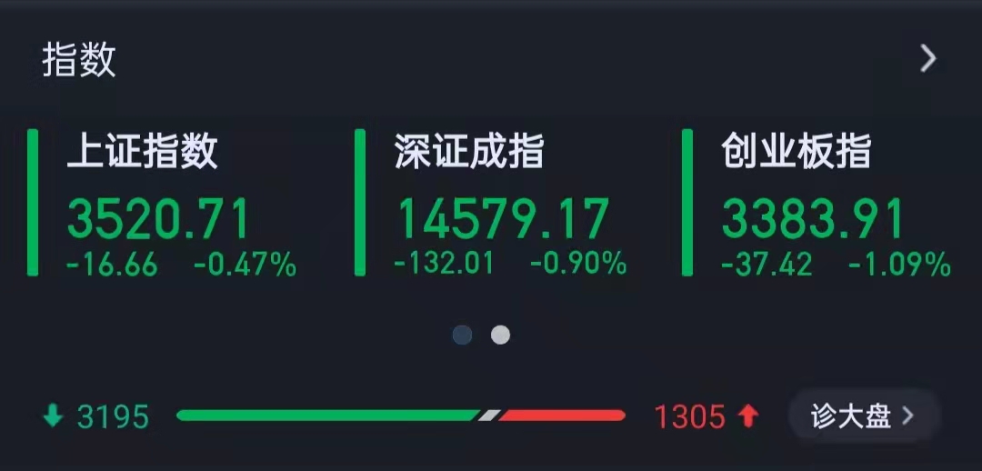 11月18日,A股三大指數(shù)弱勢(shì)震蕩,截至收盤(pán),上證指數(shù)跌0.47%,報(bào)3520.71點(diǎn);深證成指跌0.9%,報(bào)14579.17點(diǎn);創(chuàng)業(yè)板指跌1.09%,報(bào)3383.91點(diǎn);滬深兩市合計(jì)成交額11243.25億元,連續(xù)第20個(gè)交易日突破1萬(wàn)億元;總體來(lái)看,兩市個(gè)股普跌,超3100只個(gè)股下跌。