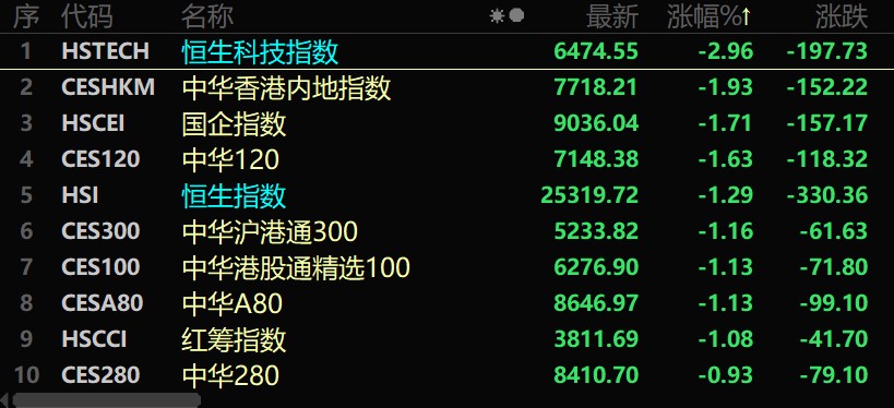 經(jīng)過近期的震蕩反彈后,11月18日,港股市場再度面臨大幅調(diào)整,恒生科技指數(shù)盤中一度跌超3%,截至收盤,港股主要指數(shù)普遍下跌,恒生科技指數(shù)跌2.96%,報(bào)6474.55點(diǎn);恒生指數(shù)跌1.29%,報(bào)25319.72點(diǎn)。