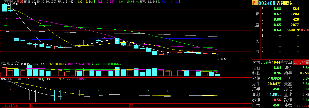 受到上述消息影響,今早9:25集合競(jìng)價(jià)時(shí),齊翔騰達(dá)被近20萬(wàn)手賣(mài)單封死跌停板。截至收盤(pán),賣(mài)單數(shù)超過(guò)56萬(wàn)手。